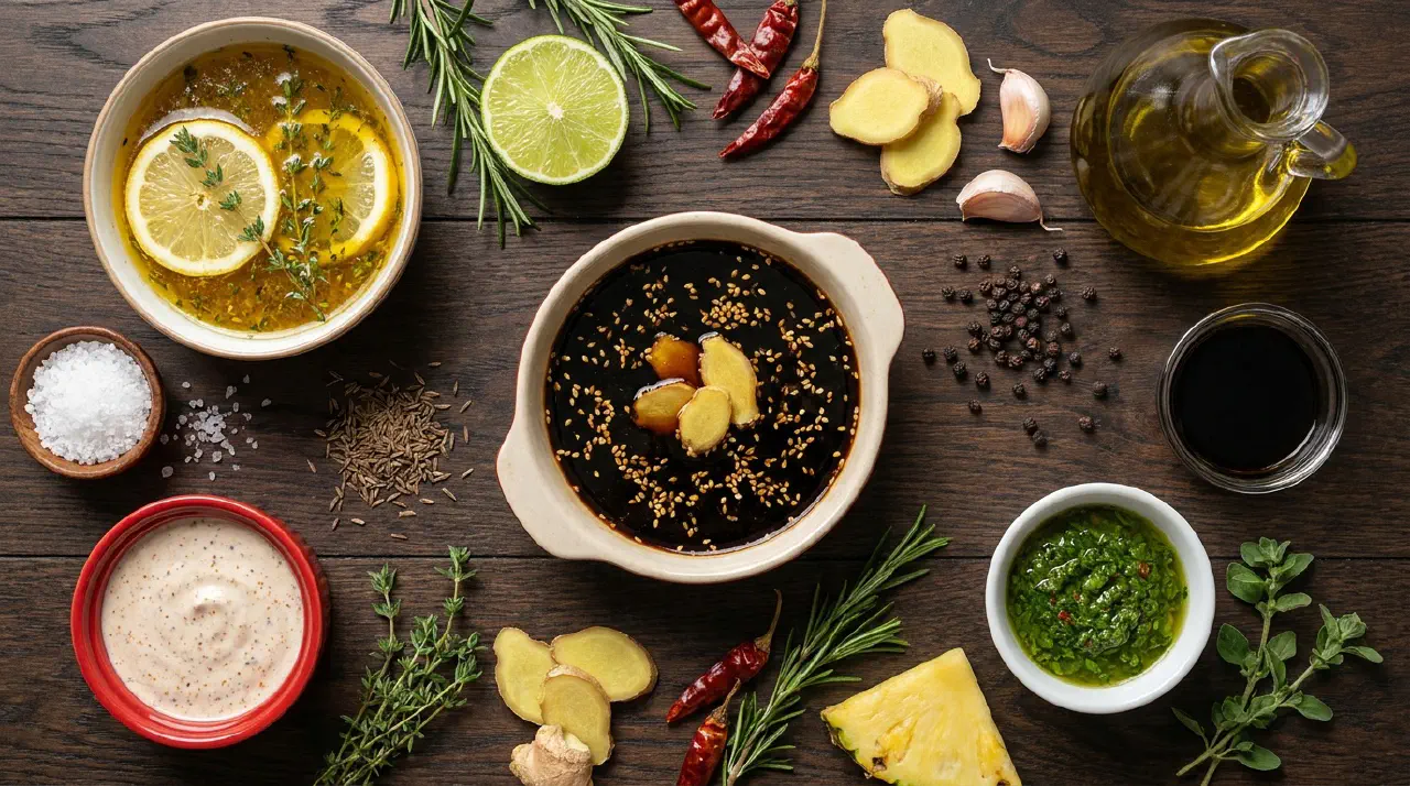 Marinades overlap with sauces and dressings more than any other category. A teriyaki glaze is both a warm sauce and a marinade. A chimichurri brushed onto a steak during grilling has become a basting sauce. A vinaigrette used briefly on raw fish sits between dressing and marinade. When choosing which approach to take, these questions clarify: