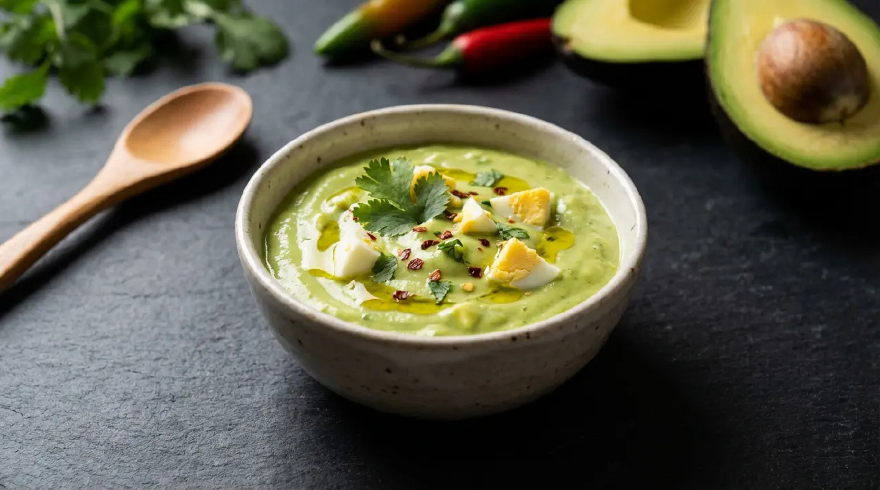 Aji de aguacate is a Colombian avocado hot sauce from the Andean region. What sets it apart from Mexican guacamole is the addition of hard-boiled egg, which is the signature Colombian element. The dual acid of lime juice and vinegar, along with habanero heat, gives it a sharper edge than its Mexican cousin.
