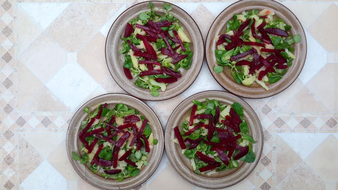 - 2 beetroots, cooked, in large julienne