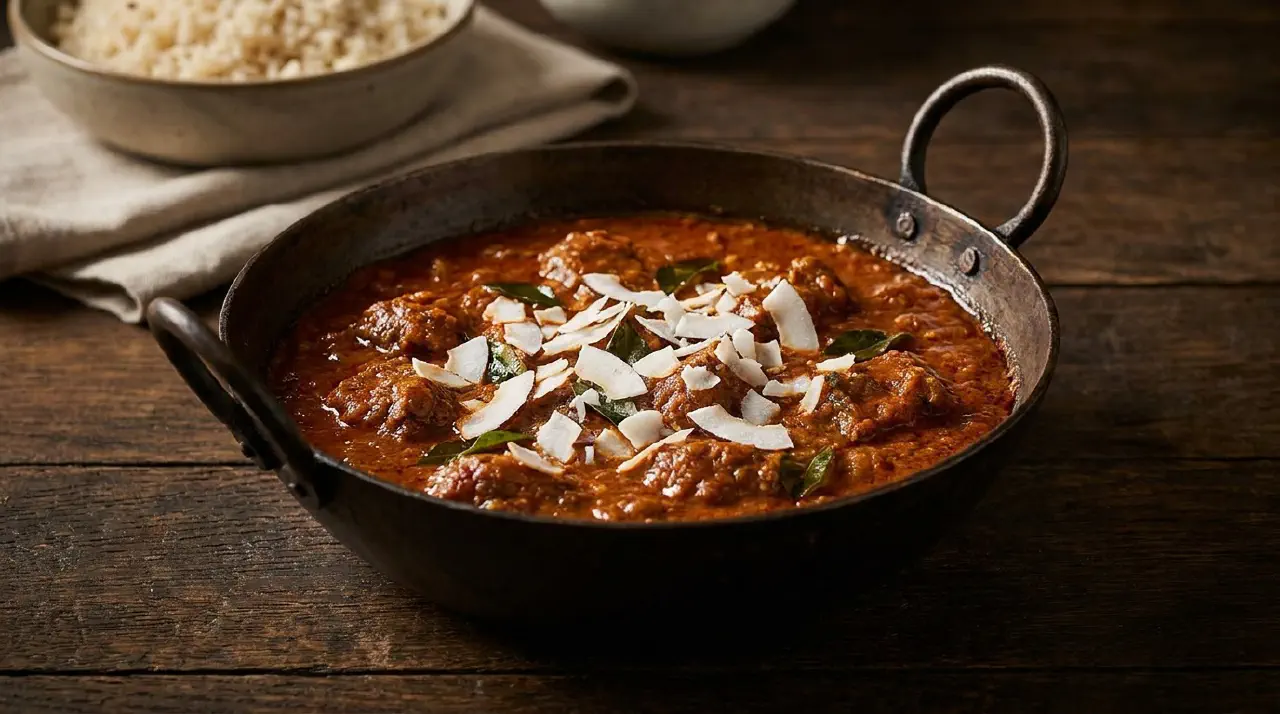 Balti dishes originated in Birmingham, where Pakistani immigrants adapted their home cooking to a fast wok technique. The name refers to the round, two-handled balti pan used both for cooking and serving. The Madras style adds more chilli and acidity than the curries of North India.