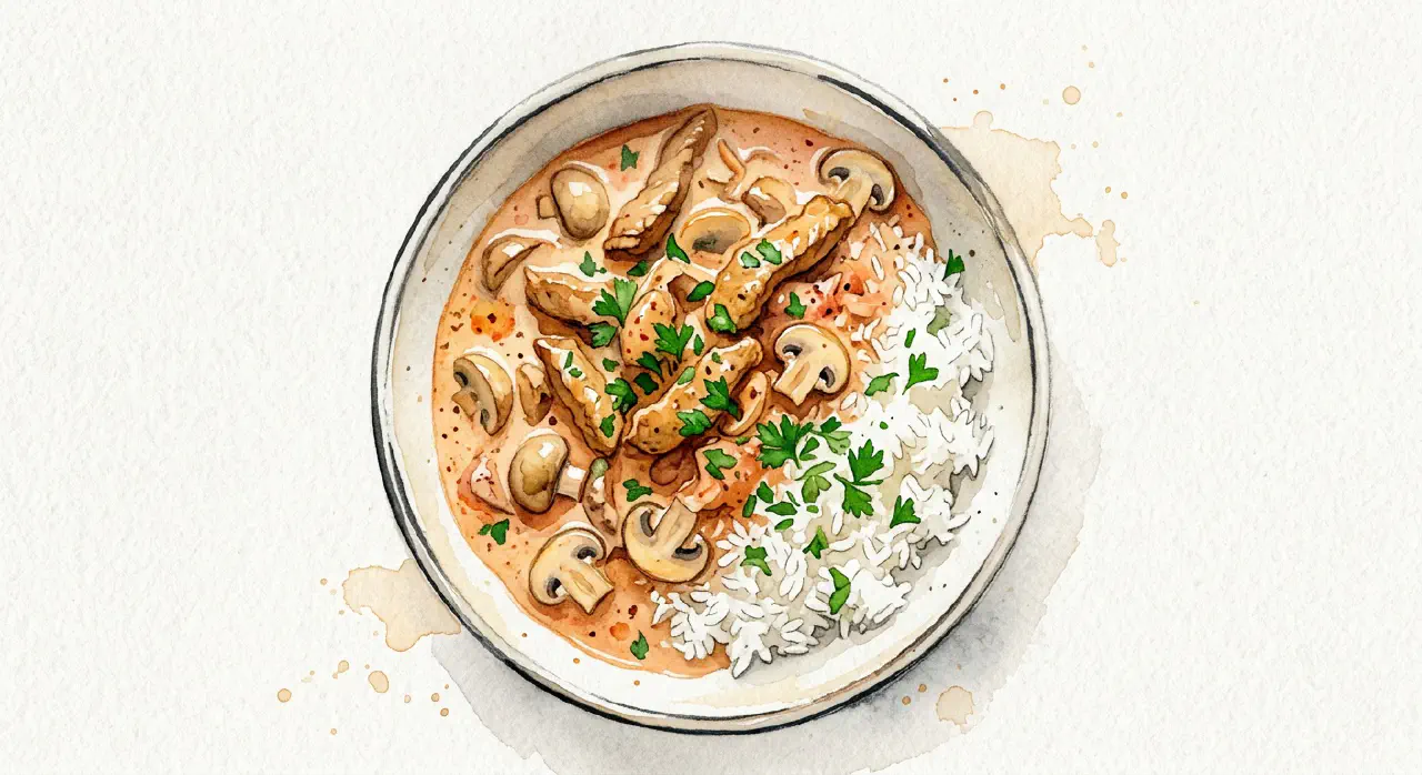 Beef Stroganoff is a Russian classic that has long been at home in the Danish kitchen. Strips of beef are seared quickly over high heat and brought together in a sauce with mushrooms, tomato paste, mustard, and crème fraîche. The key is to take the meat off the pan in time — it’s the sauce that simmers, not the beef. Serve with rice or mashed potatoes.