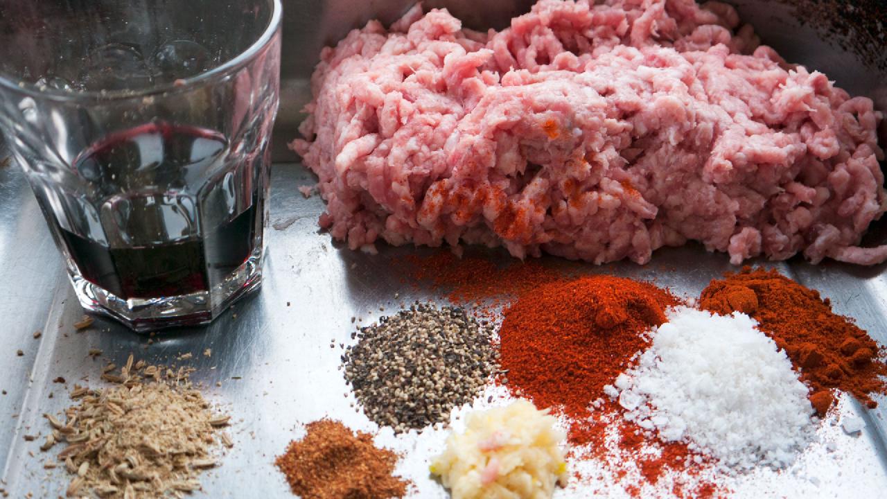 When I cook fried vegetables, make Spanish omelettes, hash from leftovers, etc. I love to add small pieces of chorizo to them. It provides an incredible amount of flavor with small amounts of meat. But chorizo is a very expensive sausage to use in frying. Therefore it is a good candidate for making your own spicy chorizo stuffing, that you can just put into a box in the fridge and use as needed.