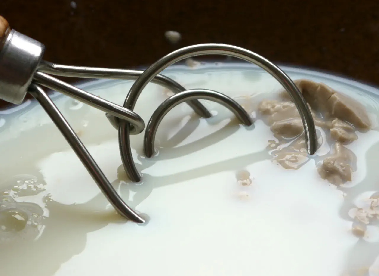 Yeast added to milk. © kvalifood.com