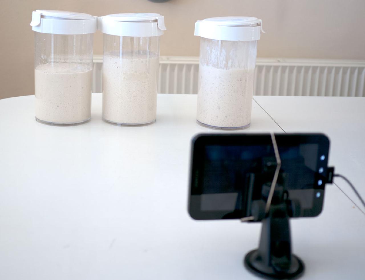 I film the fermentation by taking a picture every 20 seconds and then assemble them into a movie in the end. Every test will have its own movie.