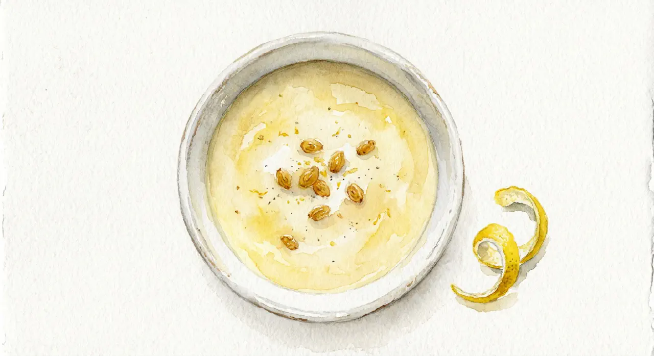 Buttermilk soup is an old Danish everyday dish served warm. The buttermilk is thickened with cornstarch and flavoured with lemon zest, egg, and sugar. It is a simple soup with a fresh tang — classic everyday food from the old Danish kitchen.