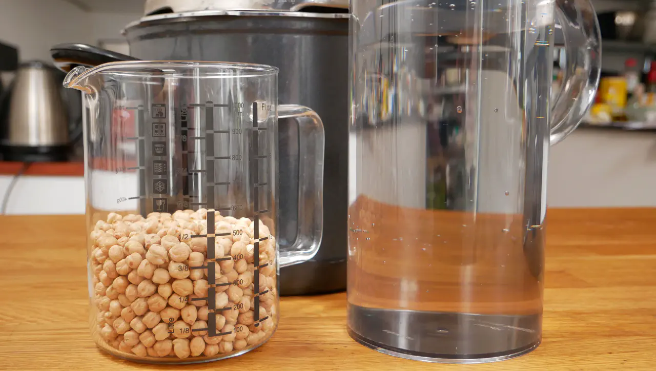 Another way to measure it, is simply to make sure there is 2 inches (5 cm) to 4 inches (10 cm) of free water over the chickpeas.