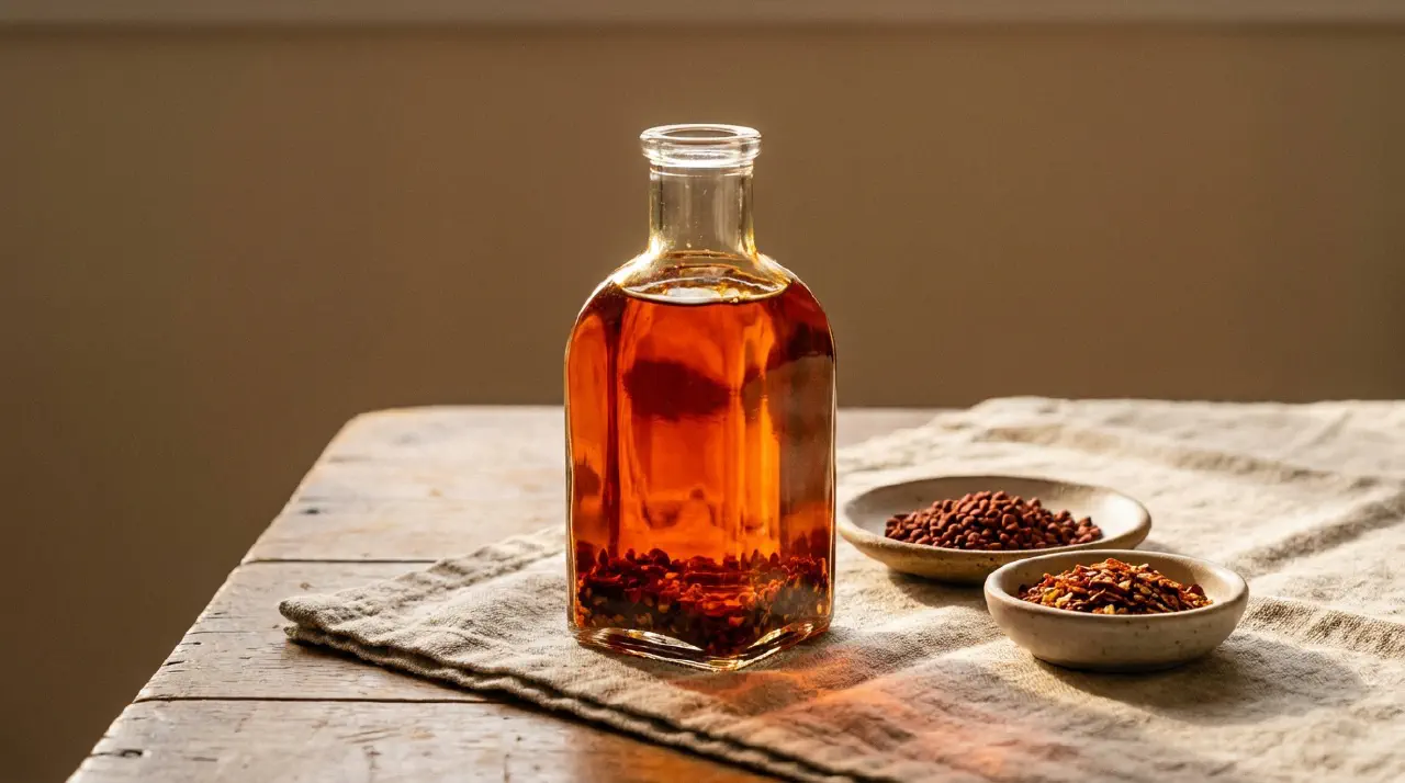 A Vietnamese pantry staple that adds colour and gentle heat to dishes. The annatto seeds give the oil a deep orange-red tint, while the chilli flakes contribute a mild kick. You’ll see this drizzled over noodle soups, rice dishes, and stir-fries throughout Vietnam. It takes about two minutes to make and keeps for a month.