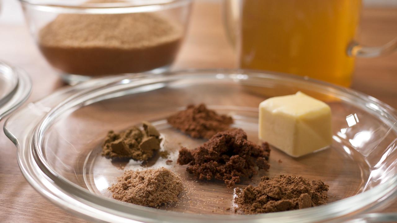 Melt the butter in a small pan and add the cumin, cinnamon, coriander, allspice and sugar. Let it simmer on low heat for a few minutes until it starts to smell spicy.