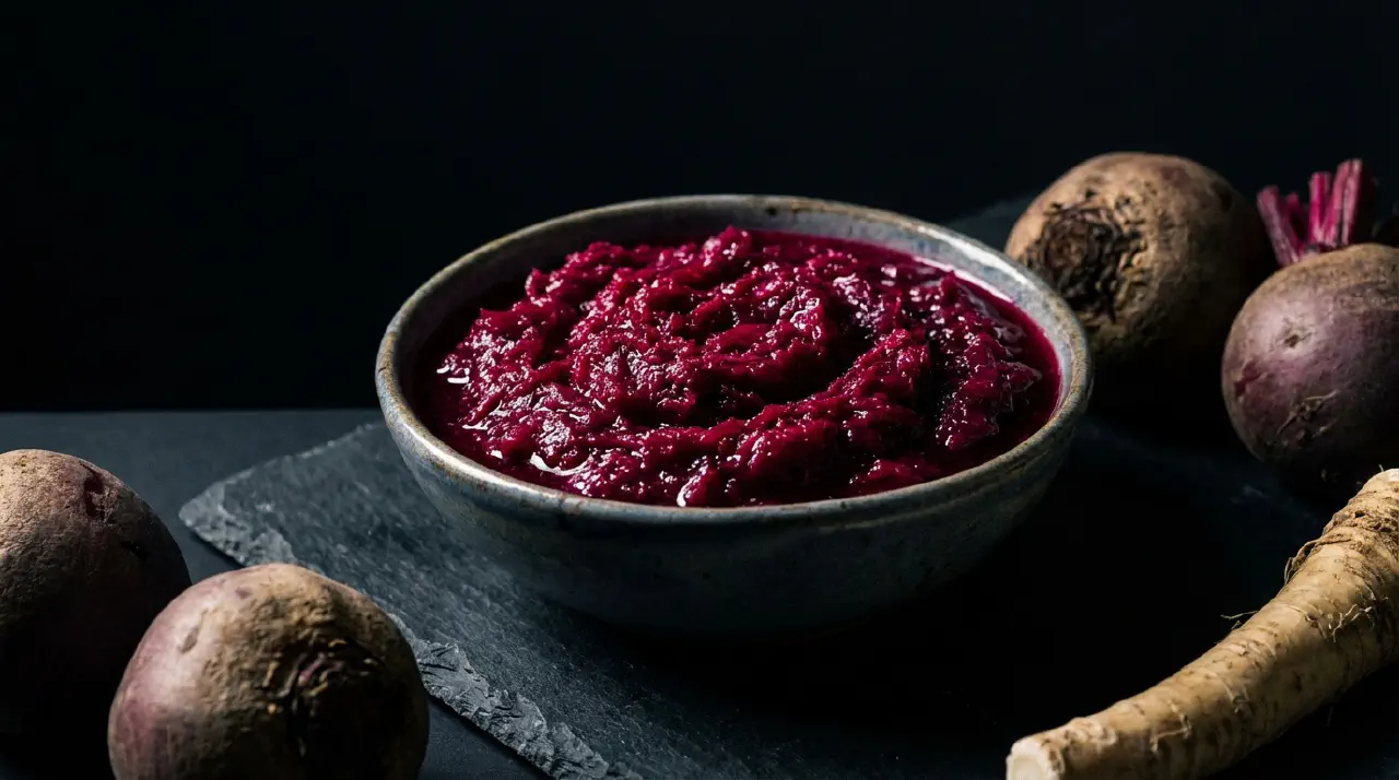 Cwikla is a Polish beetroot-horseradish relish served cold with meats, especially at Easter. It has been documented in Polish cooking since 1567. The horseradish-to-beet ratio is the main variable – adjust to your heat preference.