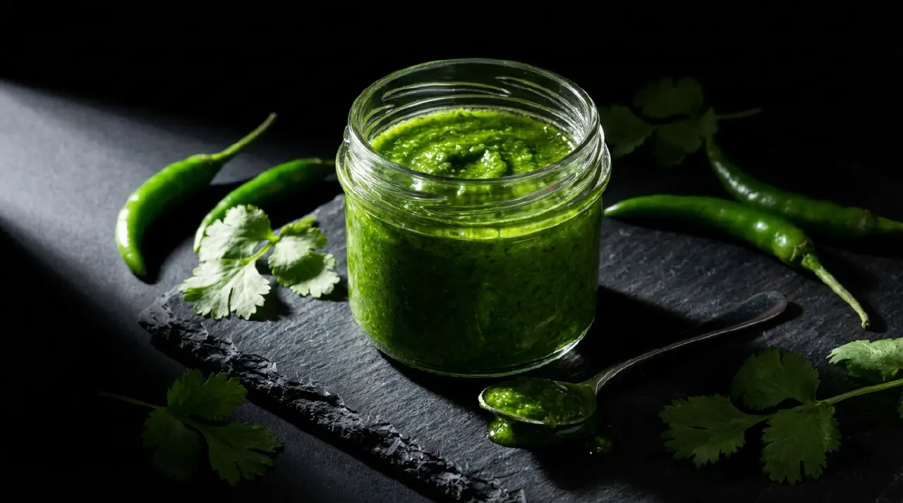 A vibrant green sauce made by blending fresh green chillies with coriander, lime, and seasoning. It’s punchy and fresh-tasting, somewhere between a hot sauce and a green salsa. Works as a condiment for grilled meats, seafood, or noodle dishes.