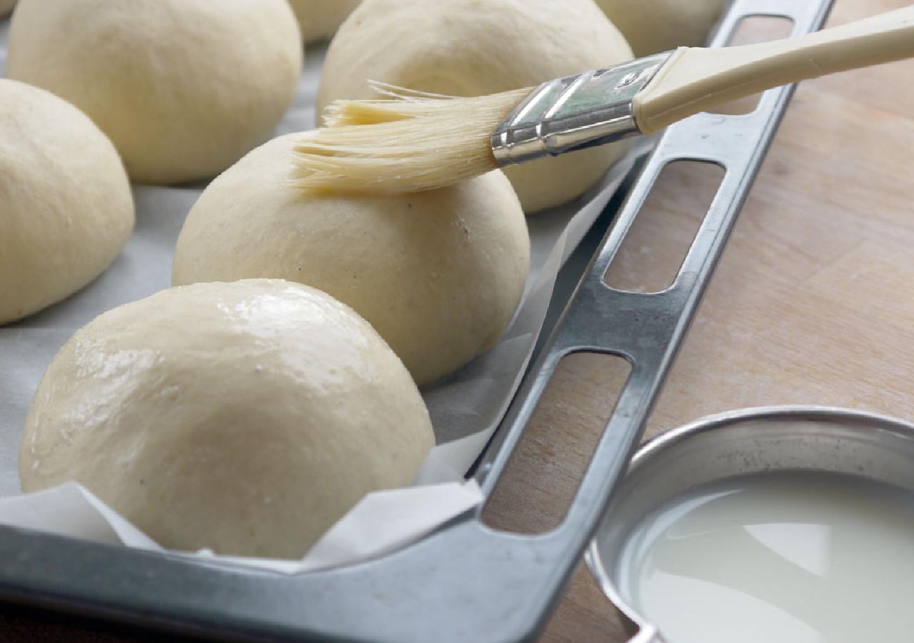 They are brushed with milk for two reasons. Firstly, it makes the crust more elastic so that the balls can easily rise. At the same time, the balls become golden faster.