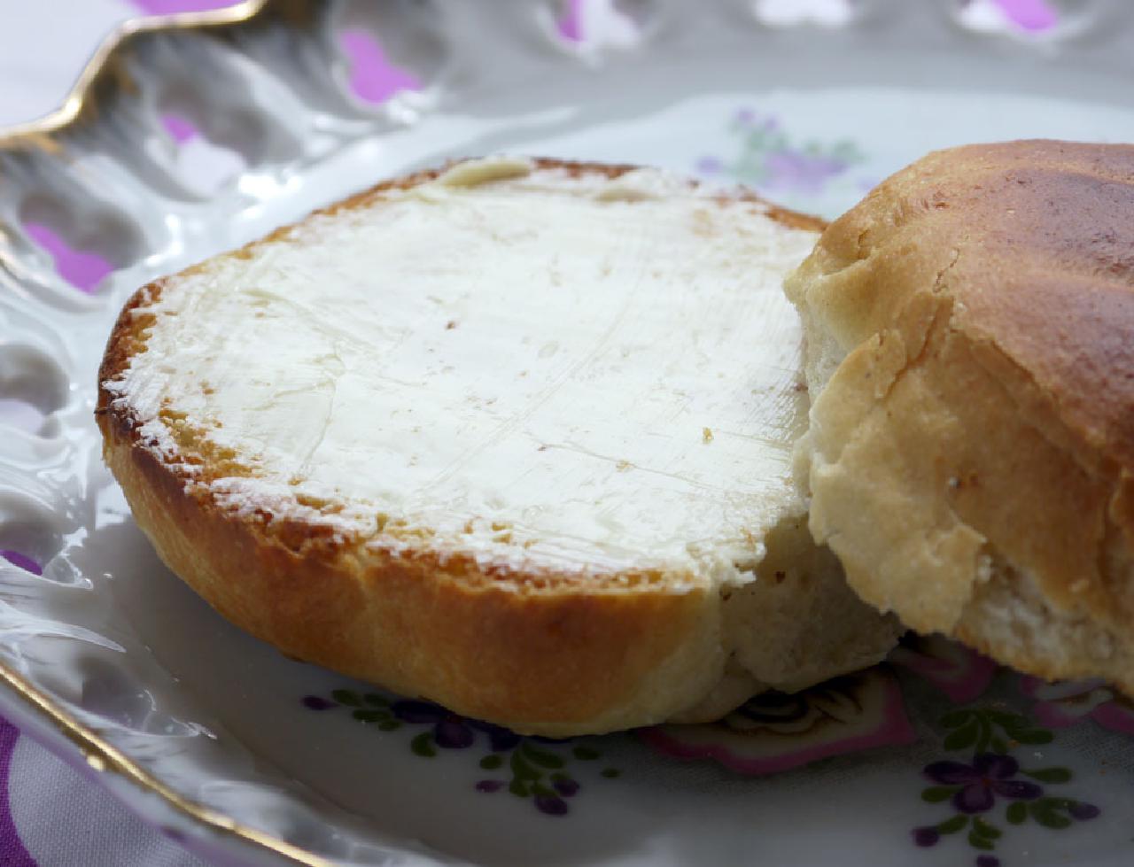 Toast them under the oven grill or on a toaster before eating with butter. Lots of butter!