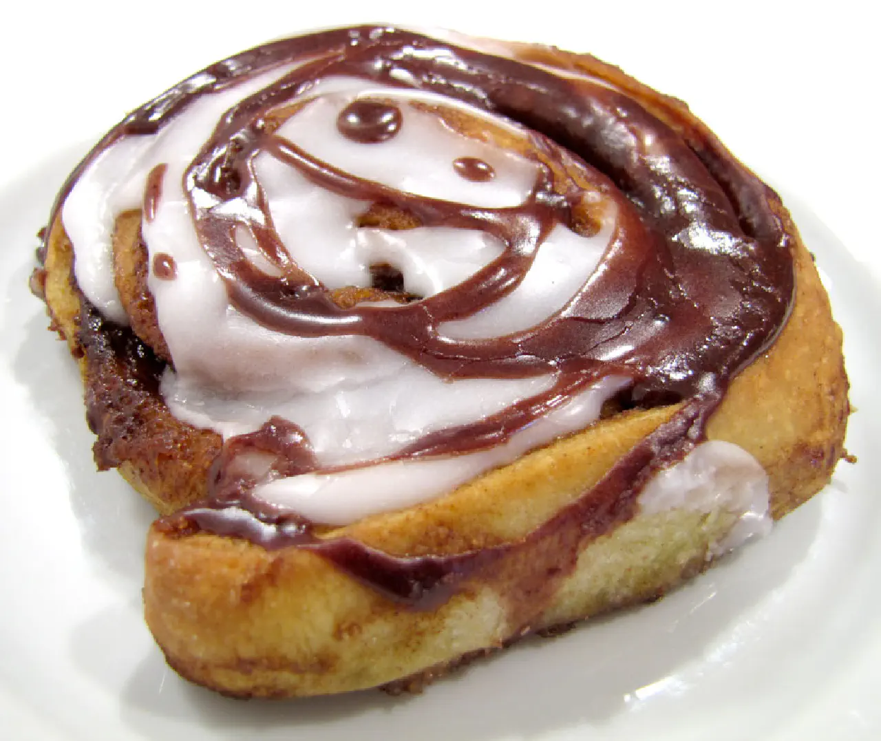 Cinnamon roll with white and chocolate icing © kvalifood.com