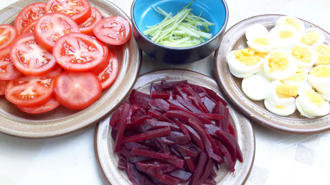 Mercedes - salad with beetroot, tomato and egg