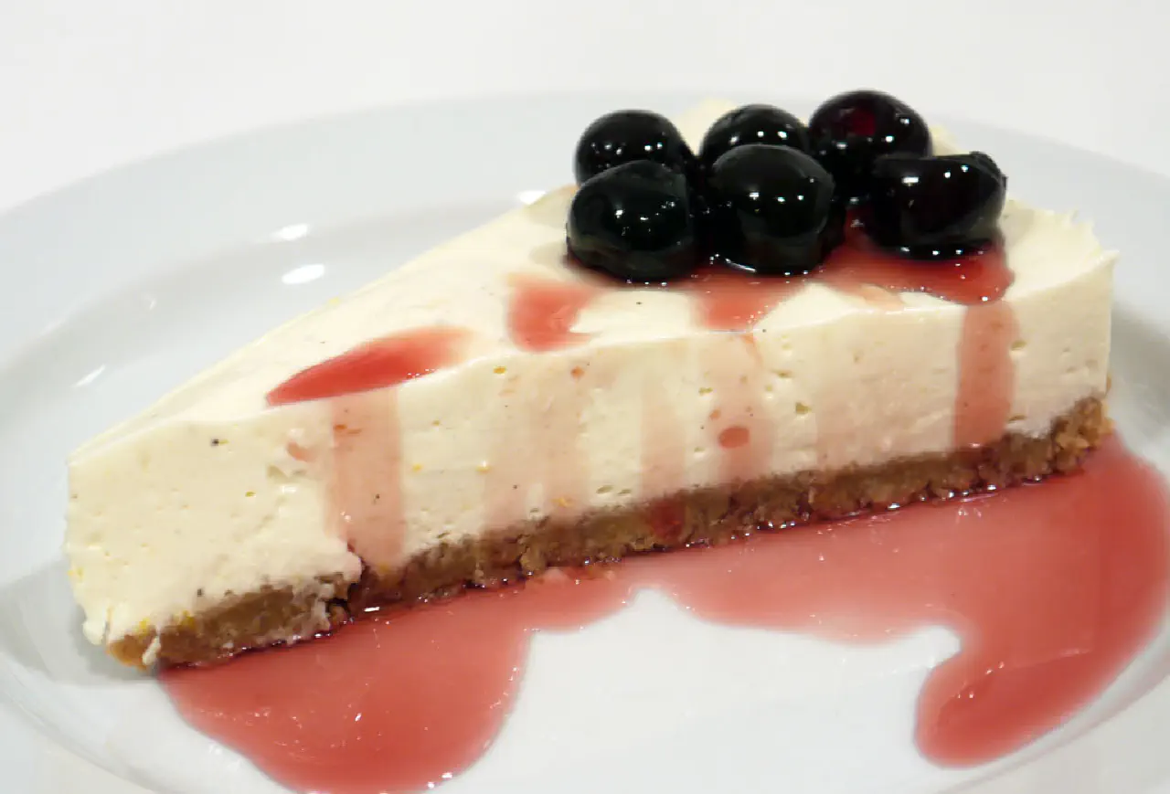 I like cheese cake with the jelly layer. It’s beautiful, fun to eat and it tastes good. But if you want a cheesecake that is very easy, just put some strong jam or marmalade on. Otherwise serve with pickled fruits. Like Amarena cherries.
