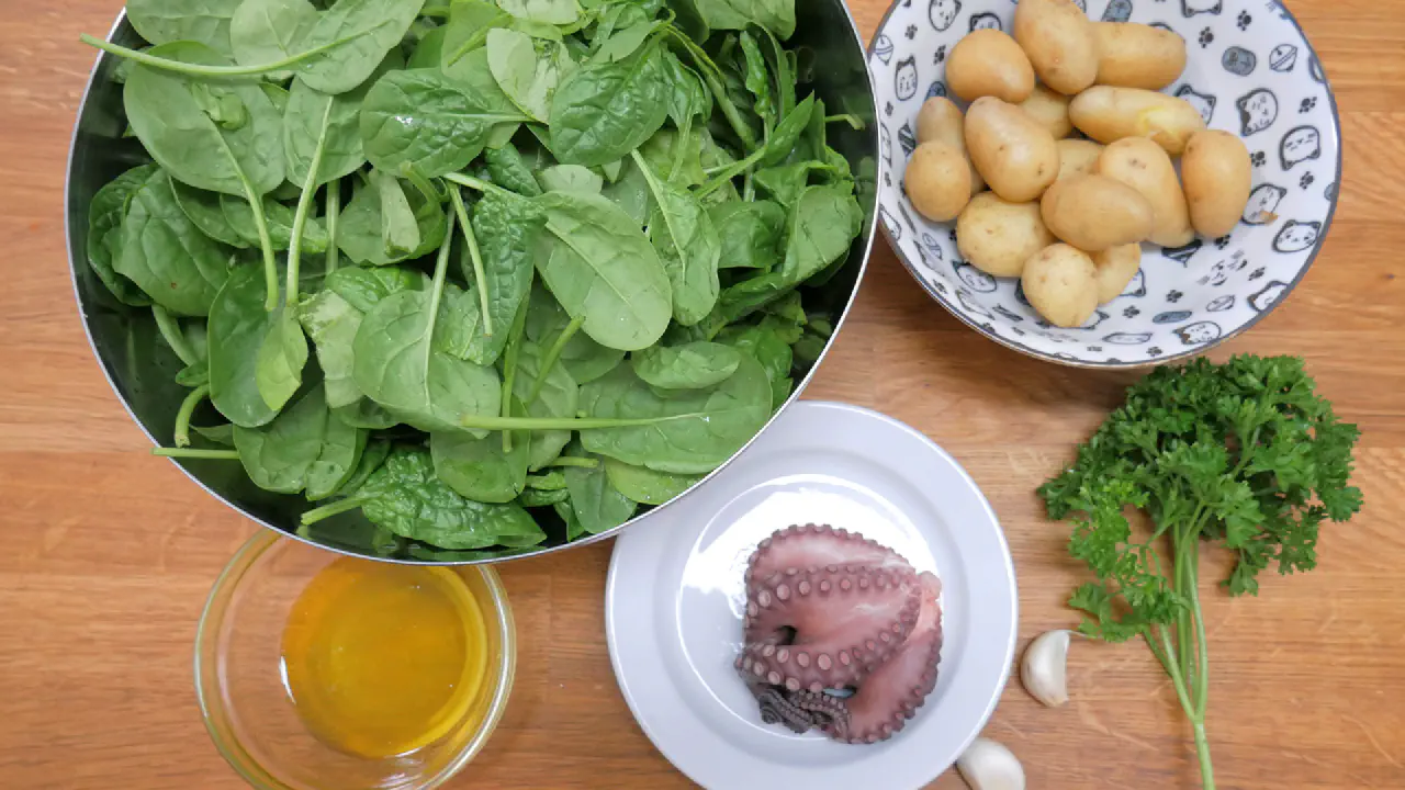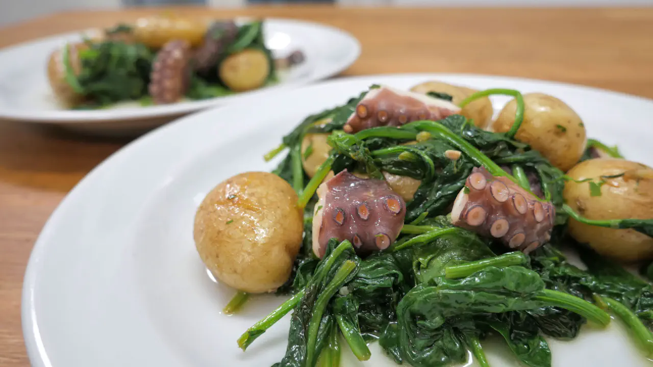 Fried Octopus With Spinach and Potato © kvalifood.com