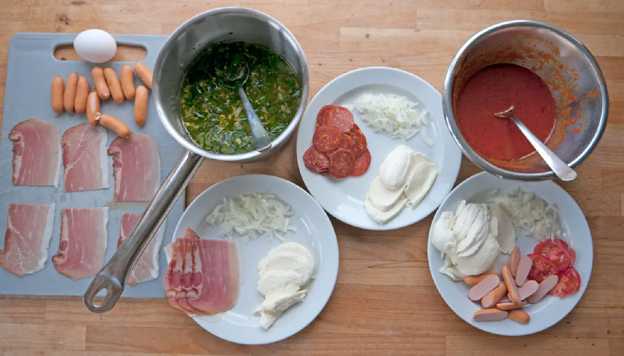 We now practically only know pizza with tomato sauce and all sorts of meat filling, but pizza started out just as a bread with fat, and then a few extra ingredients to give it some flavor.