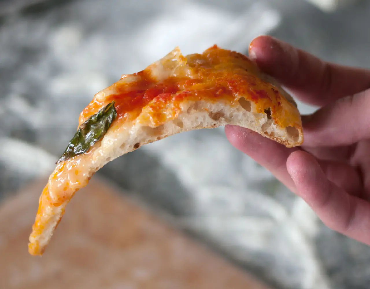 In my opinion the best pizza has a thin crust that just needs 2-3 minutes in a 600°C (1100°F) degree hot stone oven. One you can eat it with your hands and where the filling does not drop off. If you are starving you just have to eat some more pieces.