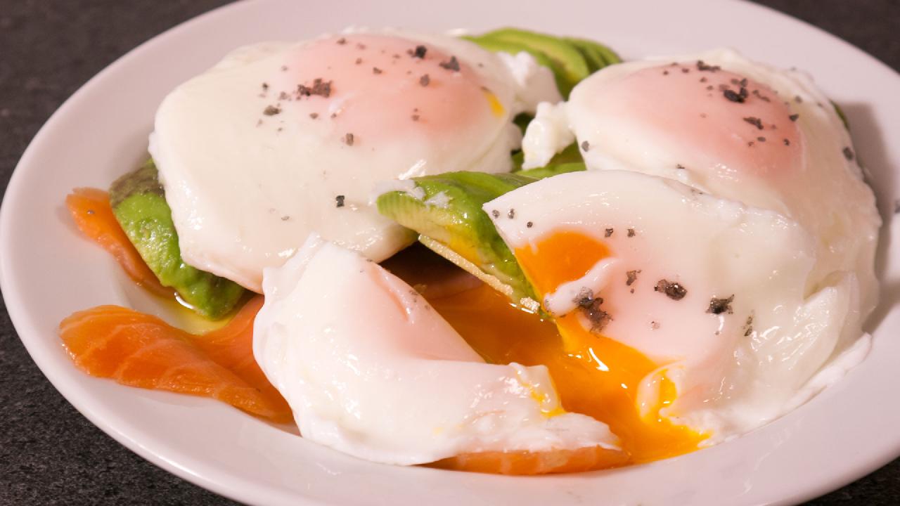 Poached eggs with avocado and smoked salmon © kvalifood.com