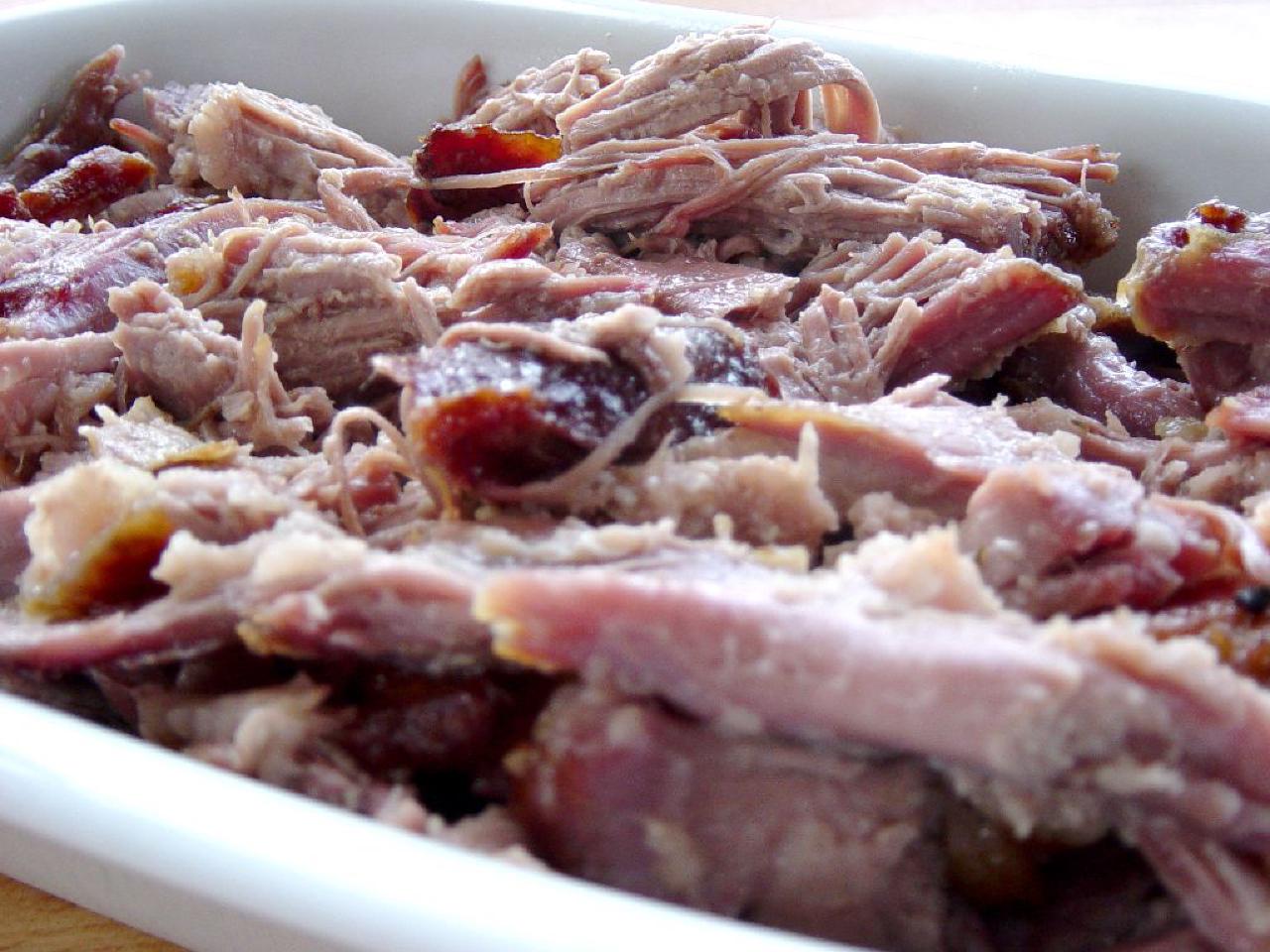 To make it taste even better and to make the meat more juicy, you can pull it apart so that it lies in the “stringy” pieces in a serving pan. Then you pour a good strong stock in the pan too. Most of the stock will then be absorbed by the meat, which will have an even stronger and more succulent flavor.