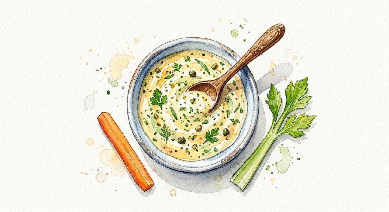 This is the classic remoulade from Escoffier. It is like a cold version of a bernaise. It is a great herbal mayonnaise sauce. Usable as a condiment or dipping sauce for raw vegetables, french fries, bread etc.