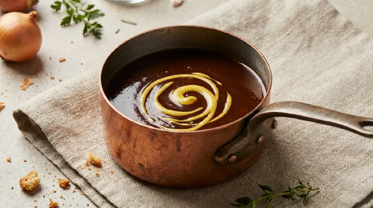 For a classical smooth finish: strain the sauce through a fine-mesh sieve, pressing on the onions to extract all flavour. For a rustic home version: skip straining.