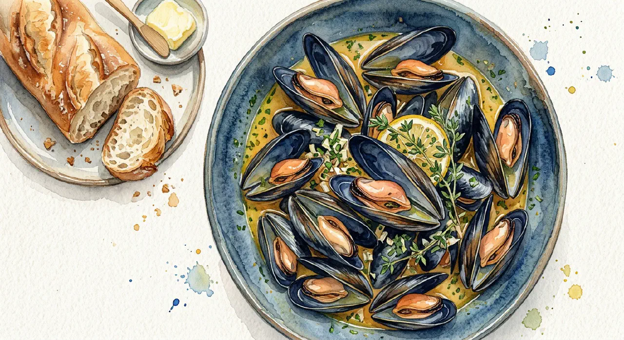Steamed mussels are surprisingly easy to make. The mussels are cleaned, cooked in an aromatic broth of white wine, thyme, and onion, and served piping hot with bread and butter. The whole pot is ready in under 15 minutes.