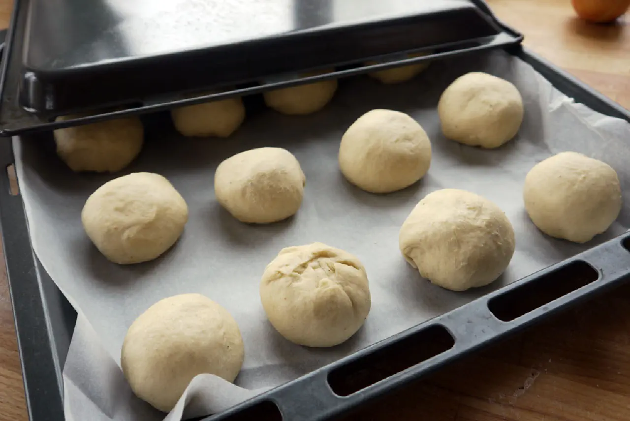 16 pieces shaped into balls — spot the one that’s upside down — proofing under a lid © kvalifood.com